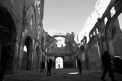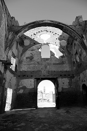 Belchite, pueblo situado a unos 49 Kms de Zaragoza y conocido por haber sido escenario de una de las batallas de la Guerra Civil Española. Aún se pueden ver las consecuencias de estos enfrentamientos, las ruinas de un pueblo que quedó destruido.